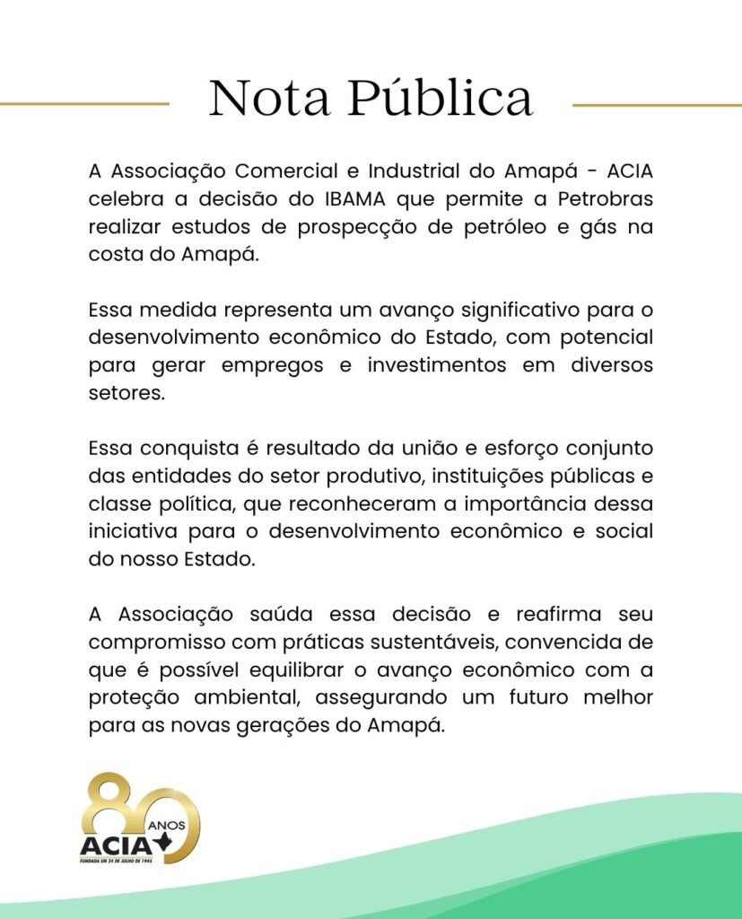 Nota Pública – Aprovação de pesquisa de petróleo no Amapá impulsiona o desenvolvimento sustentável 21 de outubro de 2025 CONTINUE LENDO...