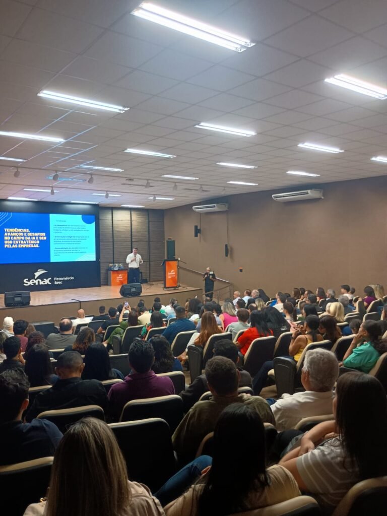 O evento aconteceu no auditório do SENAC e contou com a participação do cientista político e empresário Andriei Gutierrez, que conduziu a palestra com reflexões profundas sobre o impacto da IA nos negócios. Com oportunidades de aprendizado, networking e troca de experiências, o evento reforçou a necessidade de inovação para garantir o sucesso das empresas no futuro.